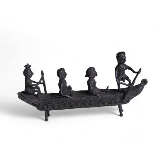 Exquisite Black Dhokra Craft "People Rowing Boat" Antique Showpiece