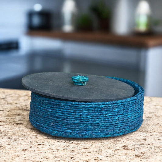 Sabai Grass Blue Circular Dry Fruit Case