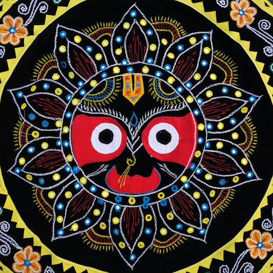 Pipili chandua - Sri Jagannath wall Hanging circular Black Orange