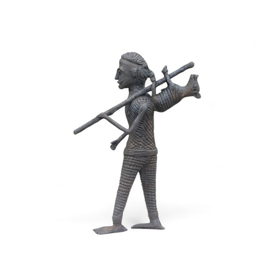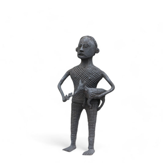 Black Dhokra Craft - Tribal Man Holding an Animal