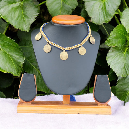 Dhokra craft Handmade Blue Tribal Beads Necklace