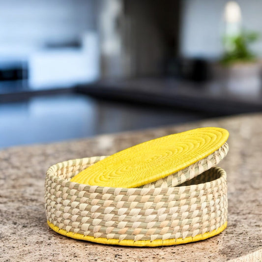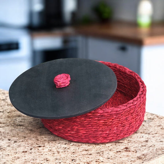 Handcrafted Sabai Grass Red Roti Case with Lid